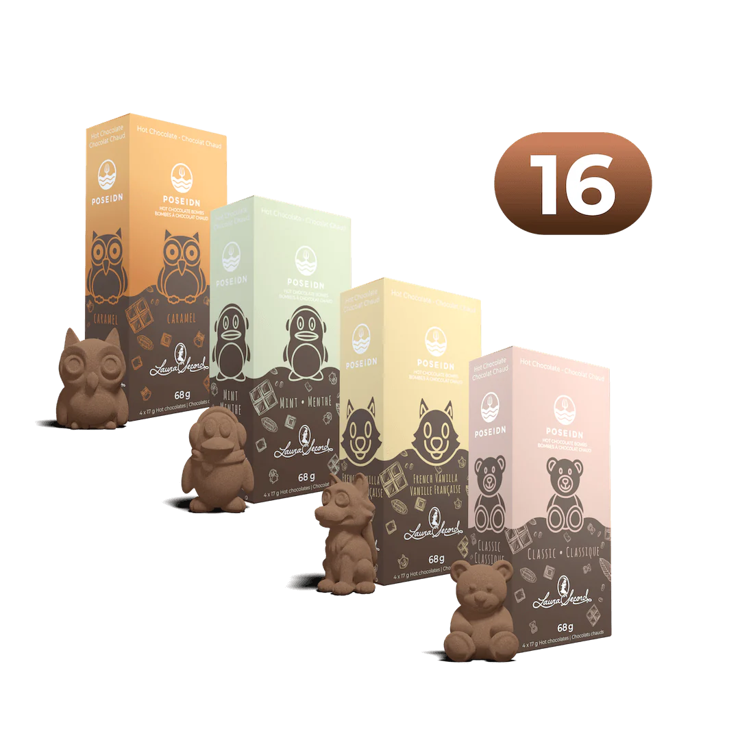 Les 4 premiers délicieux parfums de Hot Chocolate Bombs que nous avons créés - Classic, Caramel, French Vanilla et Mint ! Ce pack a quelque chose à offrir à tous les amateurs de chocolat chaud. Que vous ayez envie du goût classique du chocolat chaud original ou de la saveur rafraîchissante de la menthe, notre paquet satisfera votre envie et créera un moment amusant. Chacun d'entre eux est fabriqué avec du cacao de première qualité, pour que vous puissiez vraiment apprécier chaque gorgée !